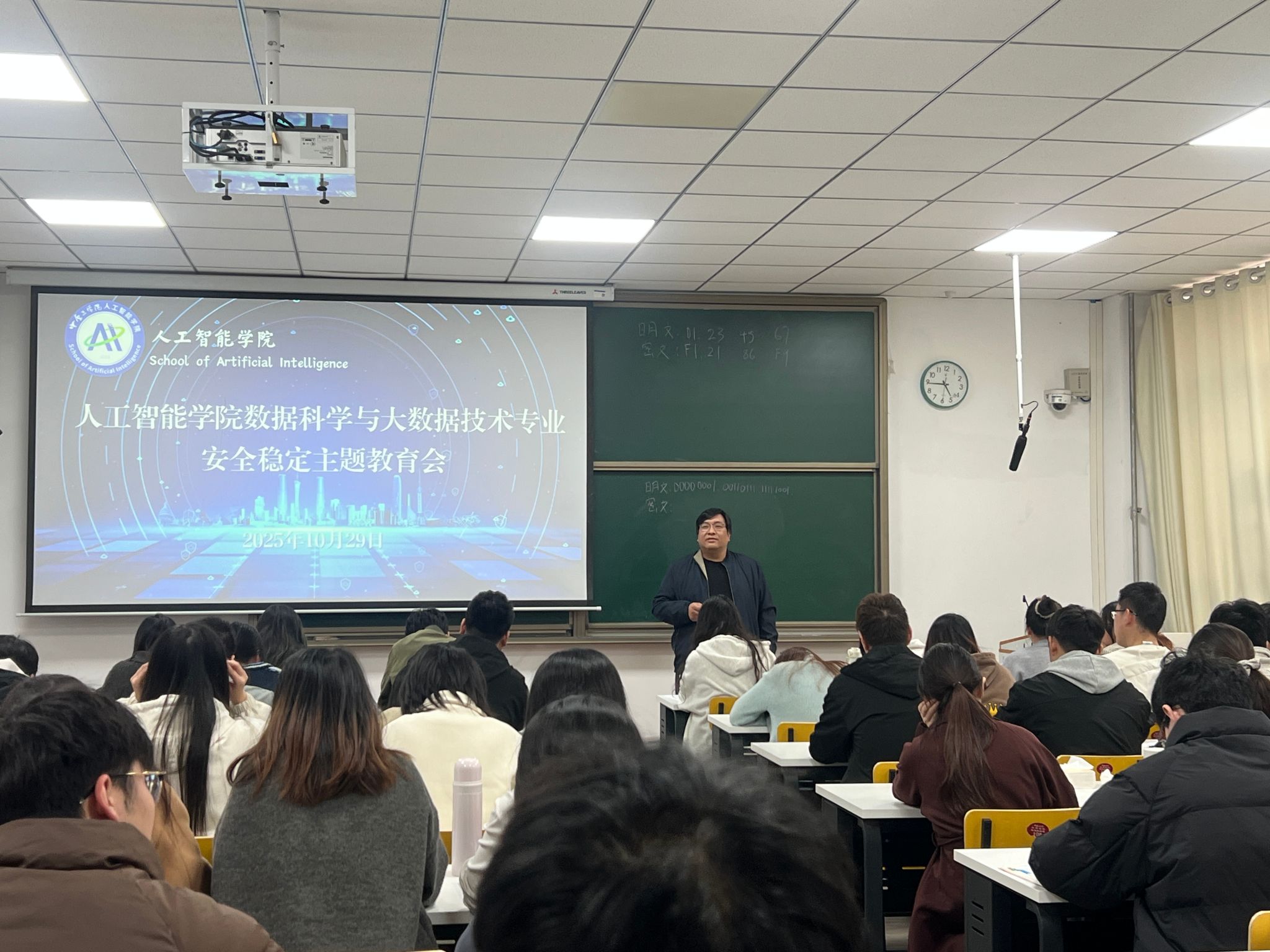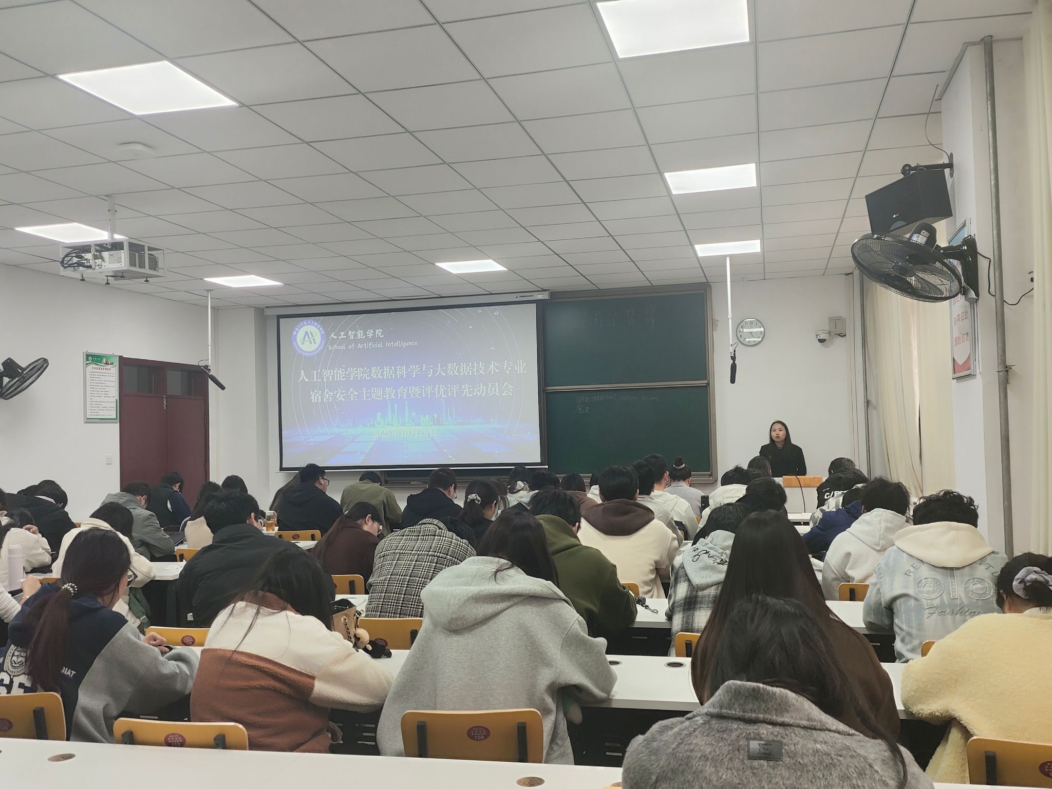 于龙湖校区3号组团楼A907、中原校区基础实验楼610教室和108教室成功召开中原校区学生安全教育与学风建设专题会议。本次会议由不雅视频直属党支部副书记张志鹏、学工办主任姜茜、不雅视频团委书记冯丽轩及龙湖校区全体心理委员、宿舍信息员、数科2022、2023级全体学生参加了会议。