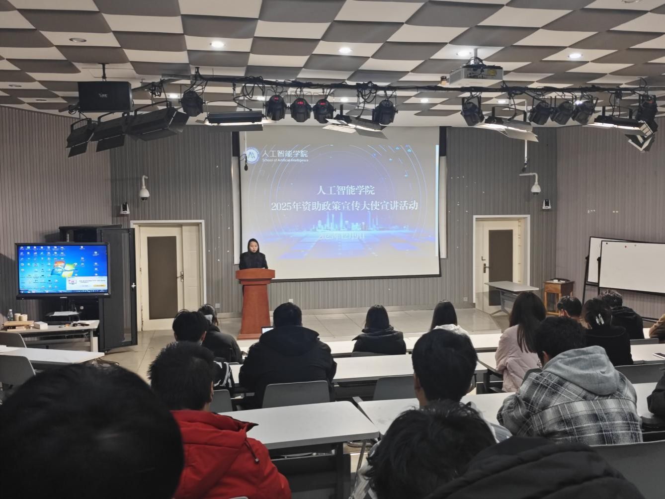 在国教楼102教室成功举办了2025年资助政策宣传大使宣讲活动。不雅视频团委书记冯丽轩及全体新生参加了本次活动。