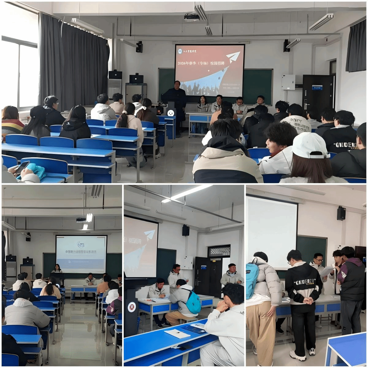 随后,河南宏博测控科技有限公司招聘经理顾丽娜女士详细介绍了企业的发展历程、核心技术优势及本次招聘的具体需求。她不仅展示了宏博测控在行业内的领先地位,还结合自身经历,围绕“职场新人如何实现职业快速成长”这一主题进行了精彩分享。她鼓励同学们找准定位,保持终身学习的态度,将个人发展与国家数字经济建设紧密结合,引发了在场师生的强烈共鸣。企业人工智能部门肖守关博士、研发经理陈关涛、电力产品经理张团等技术与管理团队负责人也依次发言,从不同角度为同学们解读行业发展趋势与岗位要求,为同学们提供了宝贵的职业指导。